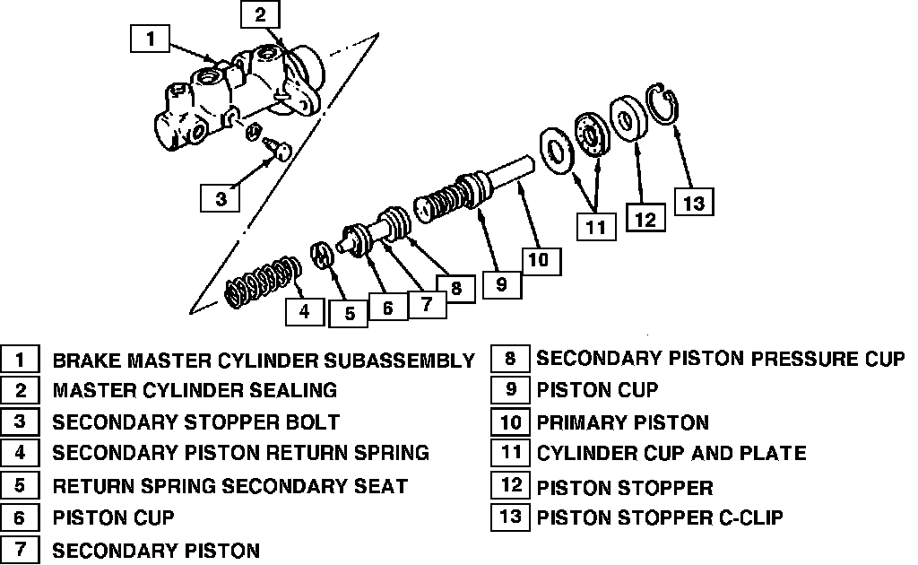 Fig. 7 Exploded View Of Master Cylinder. Tracker Models: