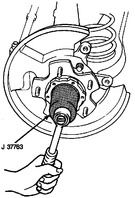 6. Using J-37763 install wheel bearing nut and tighten to 210 Nm (155 lb ft).