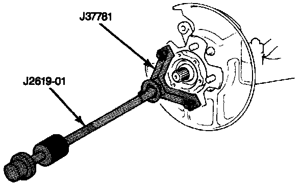 5. Wheel hub assembly. If assembly can not be removed by hand use hub remover J-37781 and slide hammer J-2619-02 or to remove.