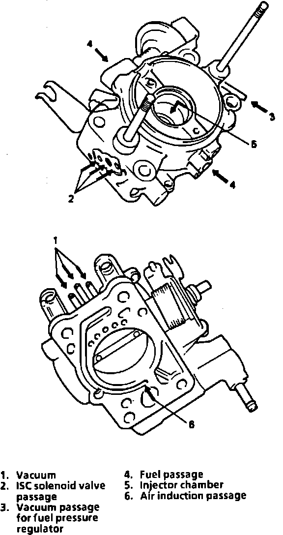 a. The throttle position sensor, ISC solenoid valve, fuel injector, fuel pressure regulator, air valve, throttle opener and other components containing rubber must NOT be placed in any solvent or cleaner bath. A chemical reaction will cause these parts to swell, harden, or deform.