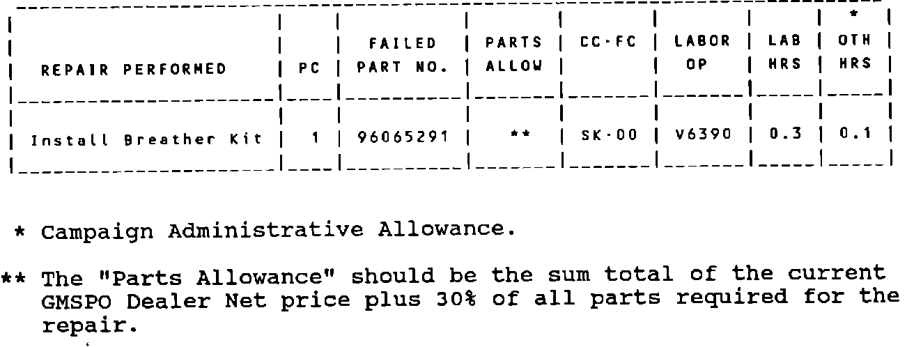 Dealers will automatically receive the correct labor and material allowance based on the labor operation performed.