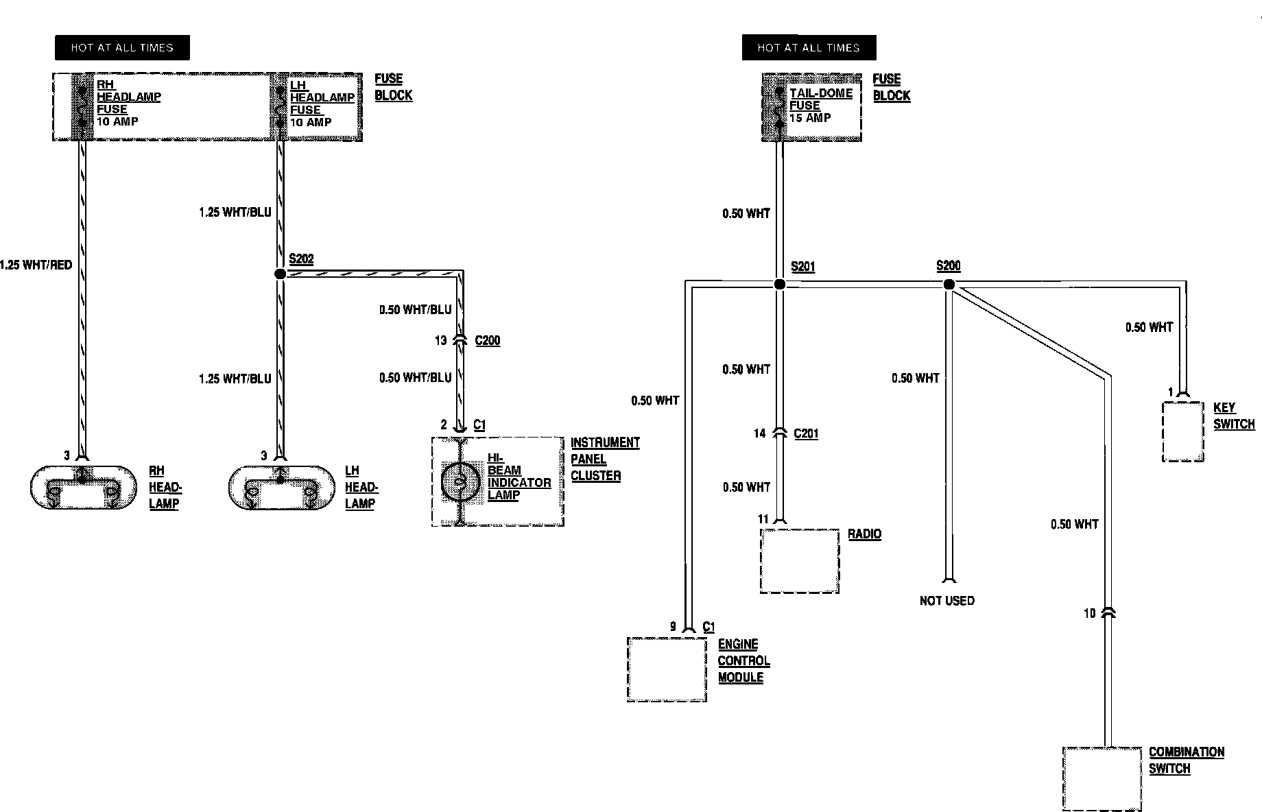 Fuse Block Details: RH-LH Headlamp/Tail-Dome: