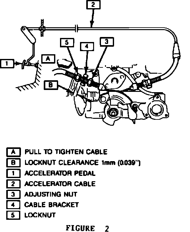 1. Make sure that the accelerator cable is properly adjusted. Refer to Engine Fuel (Section 6C) in the 1989, 1990 or 1991 GEO Tracker Service Manual.