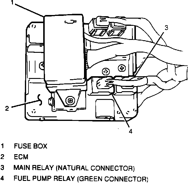 2. Fuel pump relay from Engine Control Module (ECM) bracket.