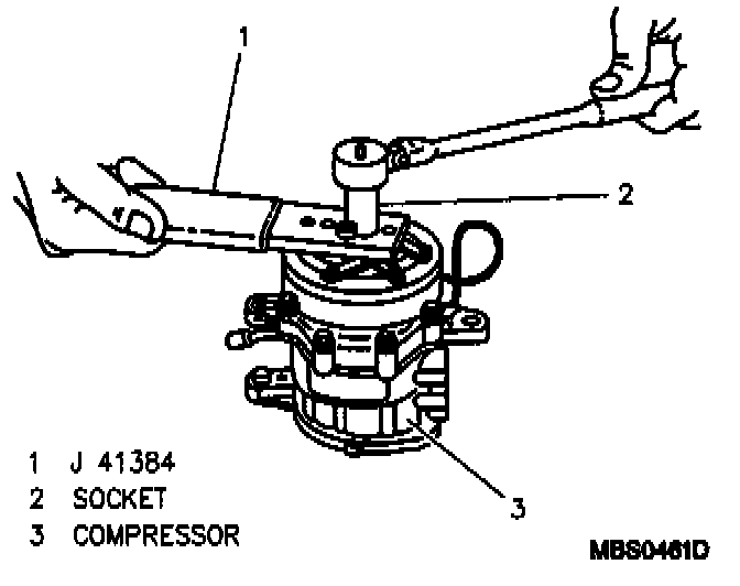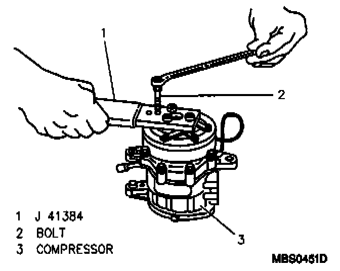 3. Pressure plate washer and nut to compressor drive shaft by using tool J 41384.