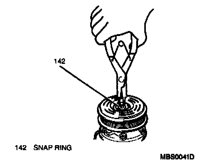 4. Snap ring and shim, using appropriate snap ring pliers.