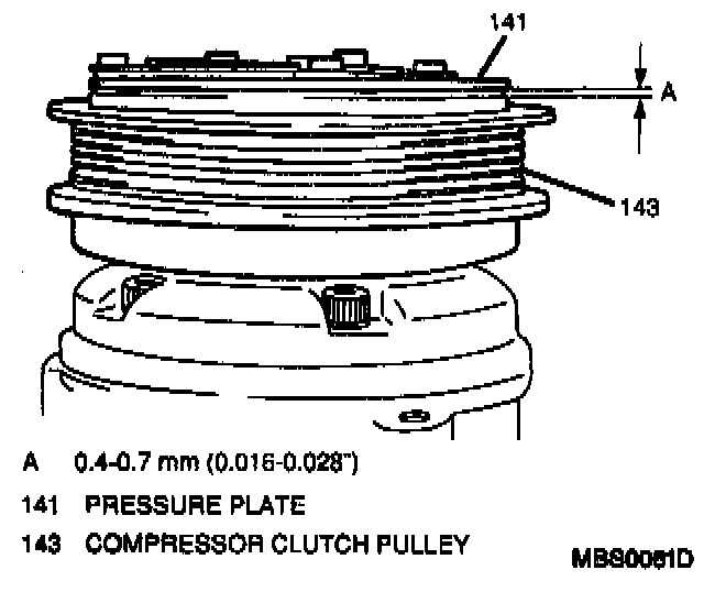 1. A/C compressor clutch pulley to compressor; secure with snap ring and shim.