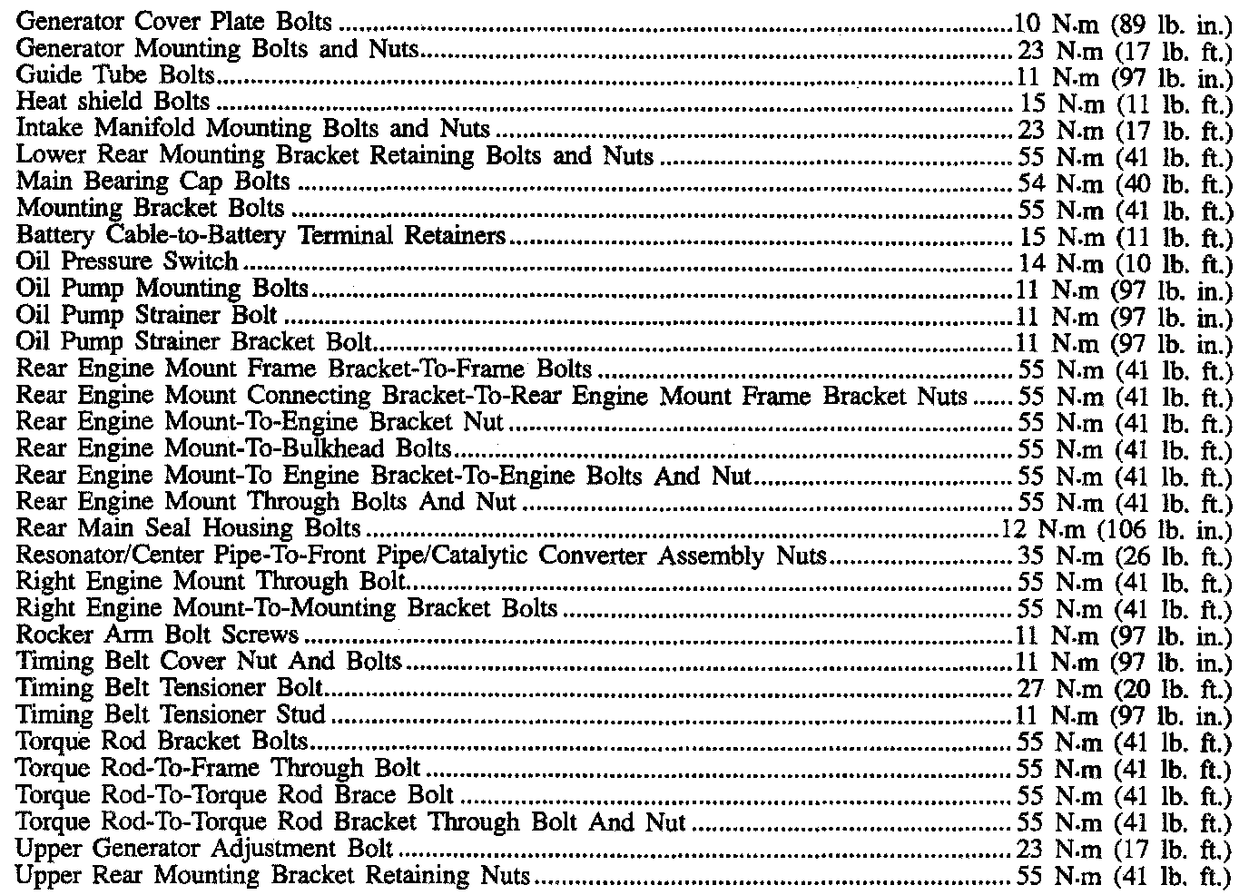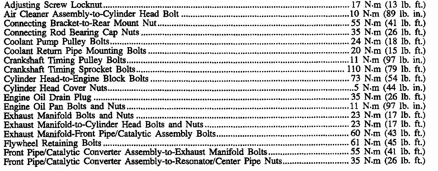 Fastener Tightening Specifications - Engine