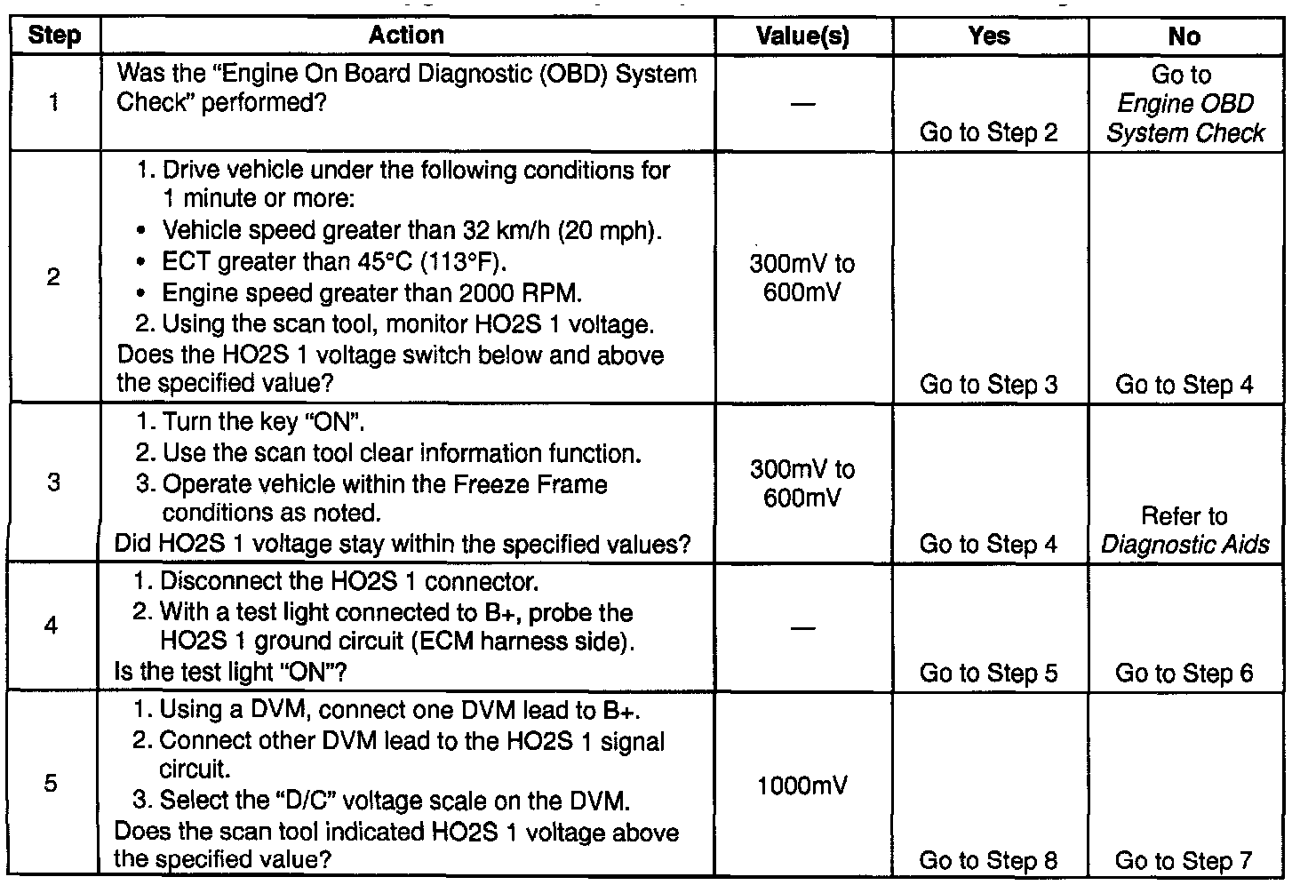 - Maximum HO2S 1 voltage remains less than 450mv.