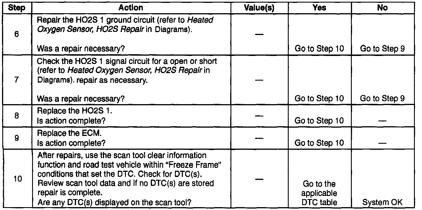 7. Checks the HO2S 1 signal circuit for a poor connection or an open, check for a short also.