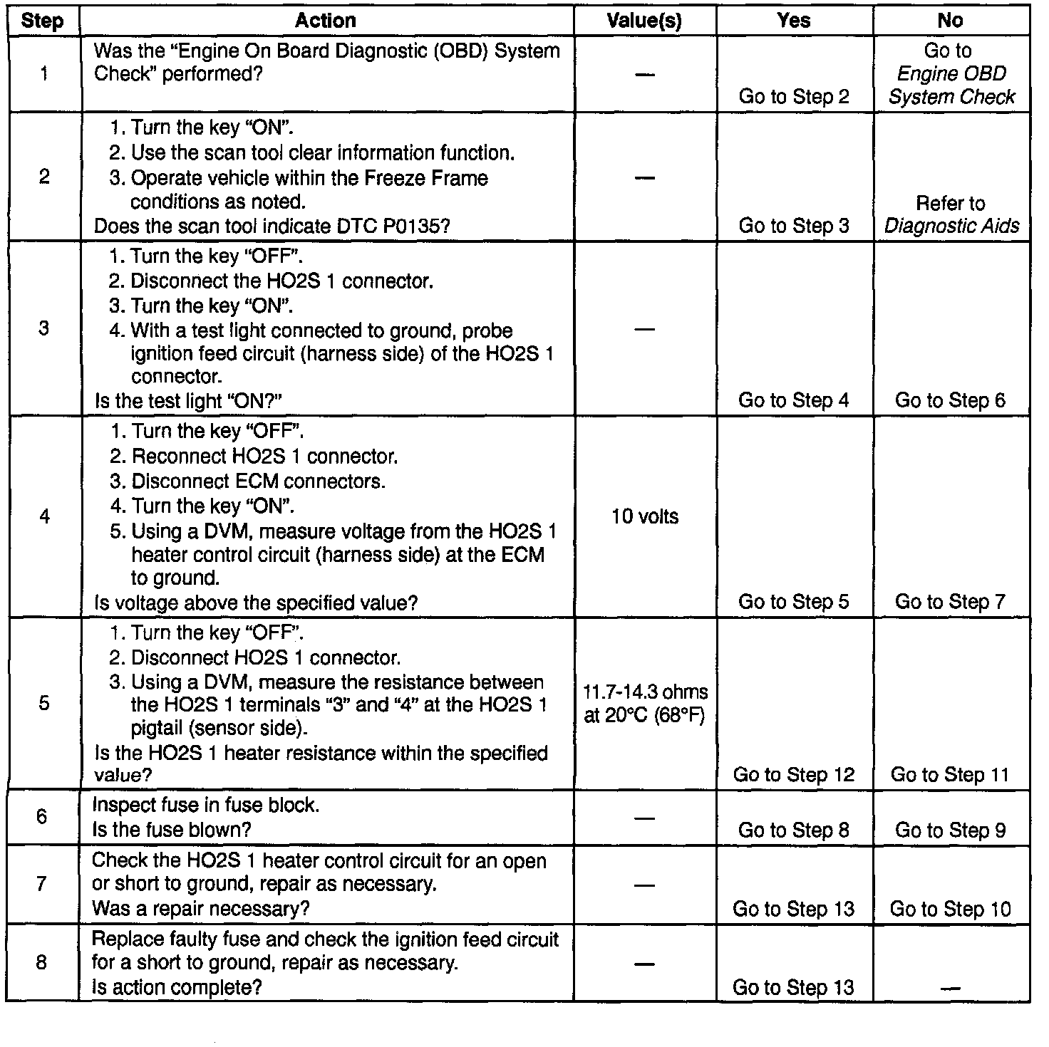 If DTC P0135 cannot be duplicated, the information included in the Freeze Frame data can be useful in determining vehicle operating conditions when the DTC was first set.