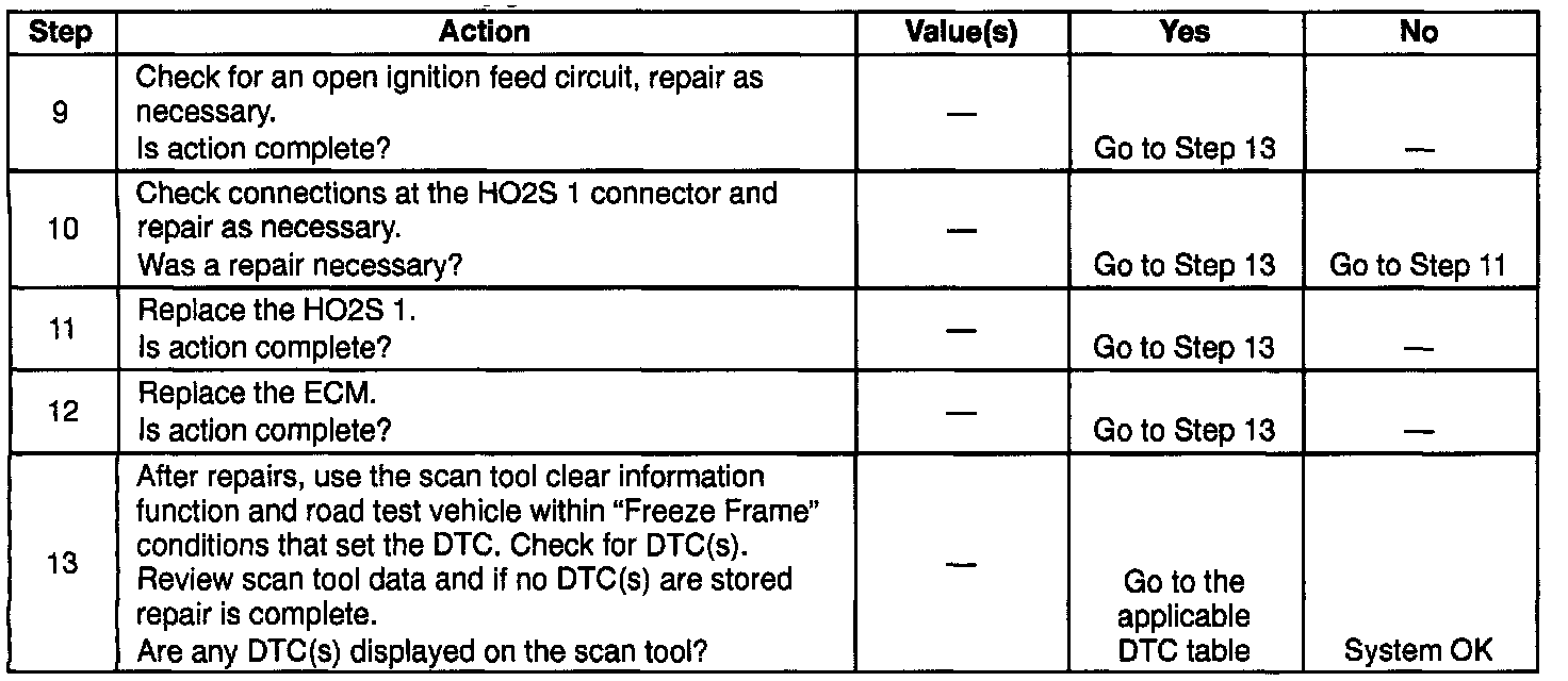 - Damaged harness. Inspect the wiring harness for damage. If the harness appears to be OK, observe the HO2S 1 display on the scan tool while moving connectors and wiring harnesses related to the sensor. A change in the HO2S 1 display will indicate the location of the fault.