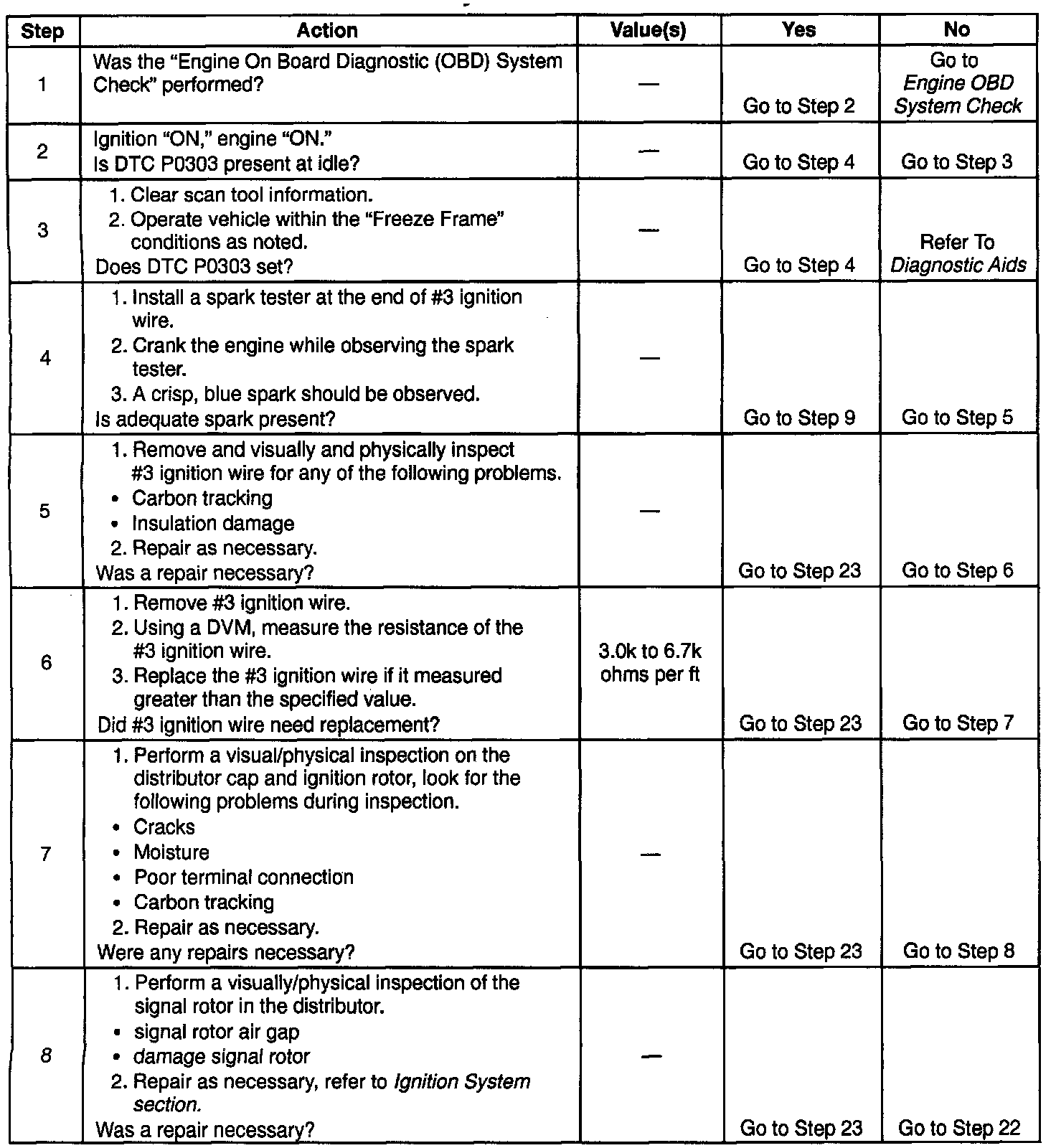 - If DTC P0303 is intermittent, refer to Symptoms. Testing and Inspection