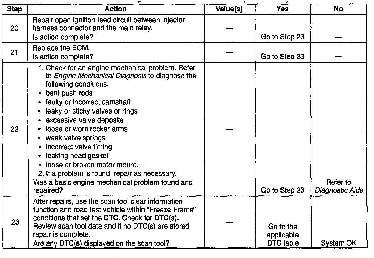 - Engine mechanical malfunction (engine compression out of specification, valve lash adjuster malfunction).