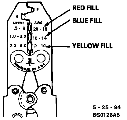 Select the proper splice sleeve according to wire size. The splice sleeves and tool tests are color coded (refer to Chart).