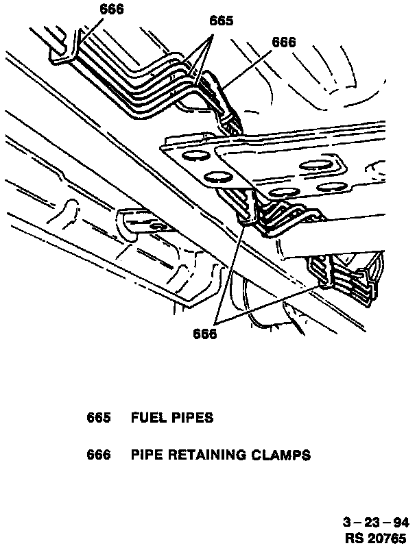1. Fuel pipes to underbody; secure with ten pipe retaining clamps.