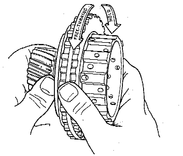 - Hold the input sun gear (331) with your left hand. The spray and retainer assembly should hold firmly when turned in a clockwise direction with your right hand.