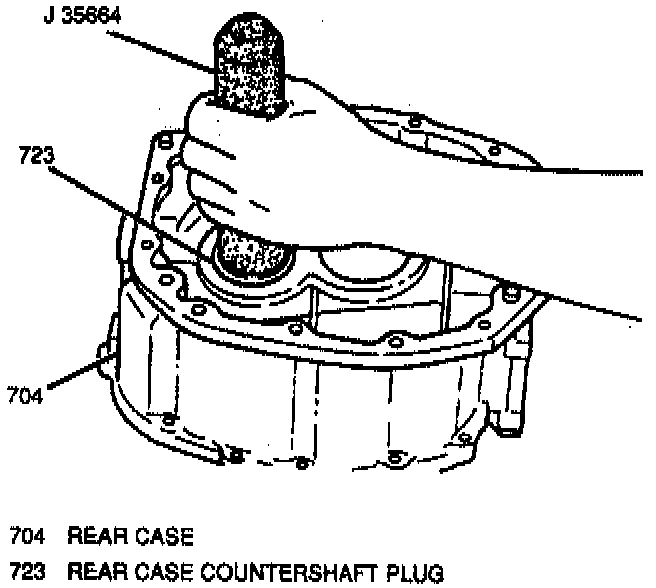 2. Rear case countershaft plug from rear case using J 35664 and hammer.