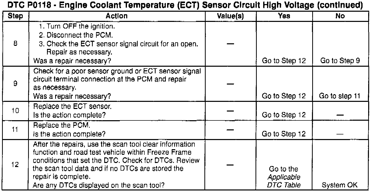 If the DTC P0118 cannot be duplicated, the information included in the Freeze Frame data can be useful in determining vehicle operating conditions when the DTC was first set.