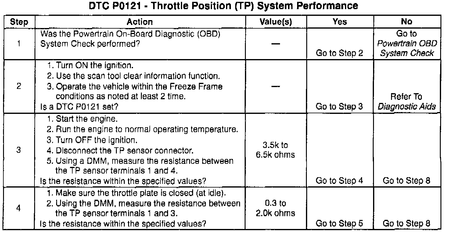 - A misadjusted TP sensor or a binding or stuck throttle plate could cause the malfunction to set. Refer to On-Vehicle Service in Computers and Control Systems/Throttle Position Sensors for TP sensor adjustment procedures.