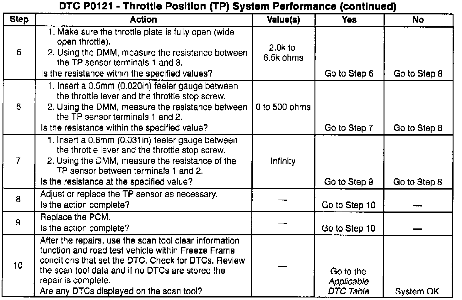 If the DTC P0121 cannot be duplicated, the information included in the Freeze Frame data can be useful in determining vehicle operating conditions when the DTC was first set.