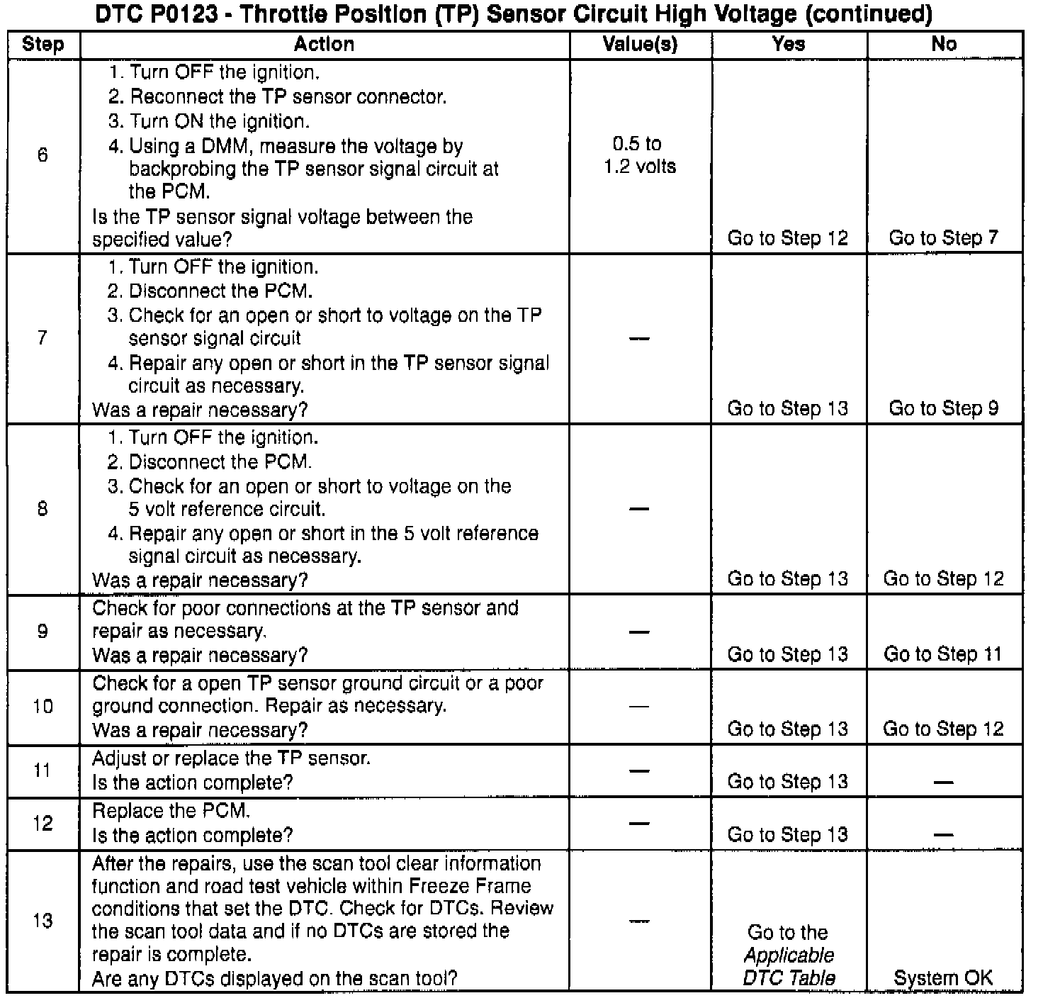 If a DTC P0123 cannot be duplicated, the information included in the Freeze Frame data can be useful in determining vehicle operating conditions when the DTC was first set.