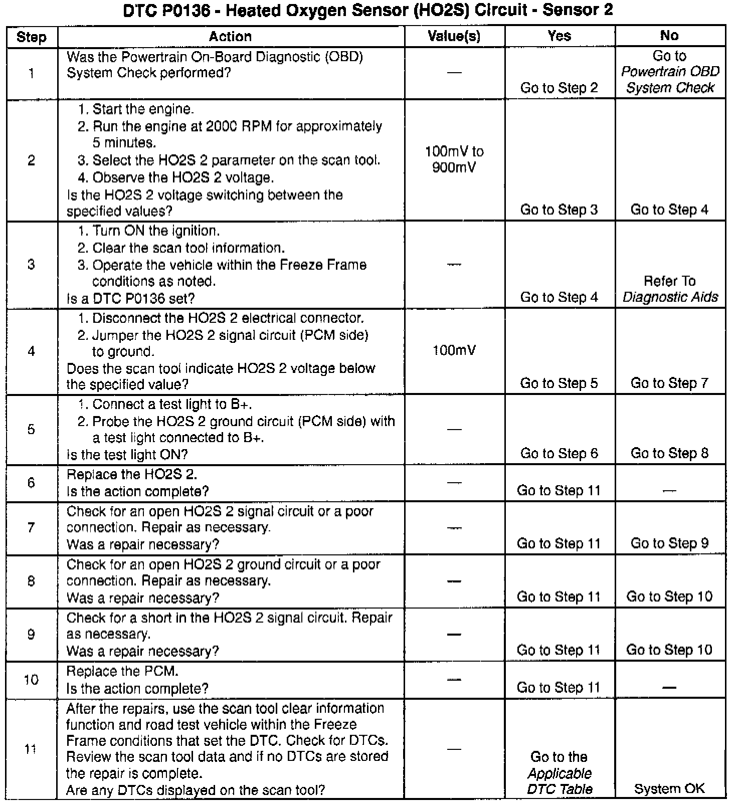 If the DTC P0136 cannot be duplicated, the information included in the Freeze Frame data can be useful in determining the vehicle operating conditions since the DTC was last set. This may assist in determining how often the DTC sets.