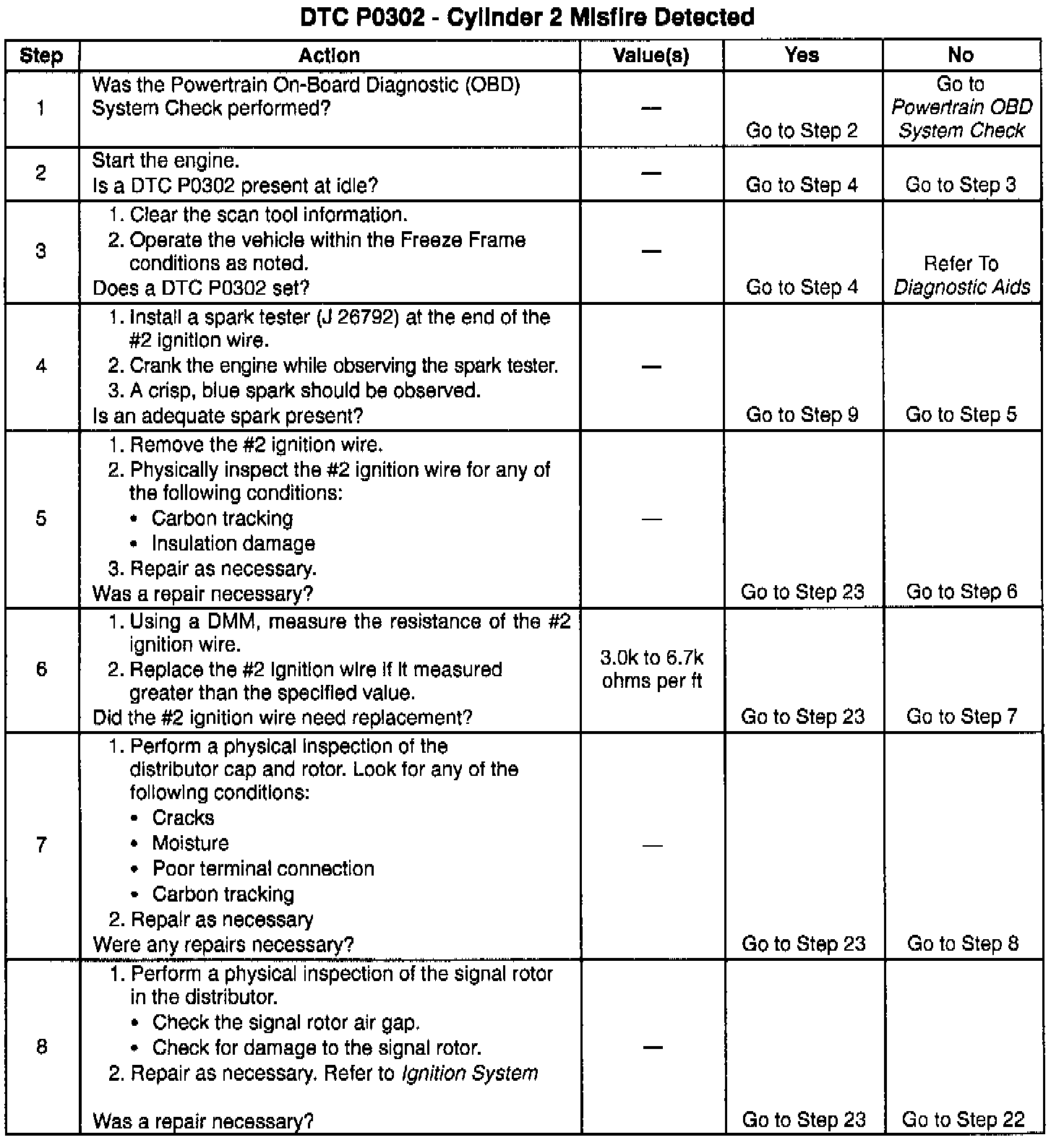 If the DTC P0302 cannot be duplicated, the information included in the Freeze Frame data can be useful in determining the vehicle operating conditions since the DTC was last set. This may assist in determining how often the DTC sets.