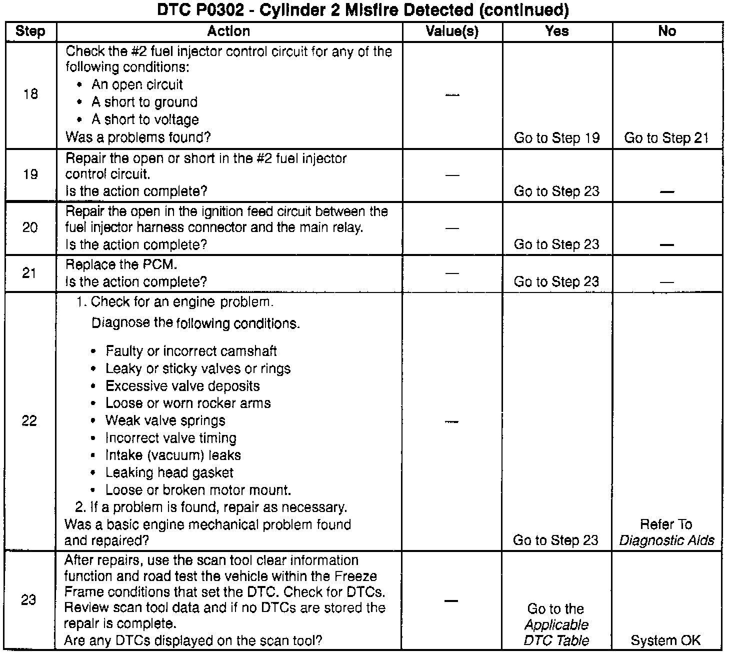 - If the DTC P0302 is intermittent, Refer to the Symptoms. Testing and Inspection