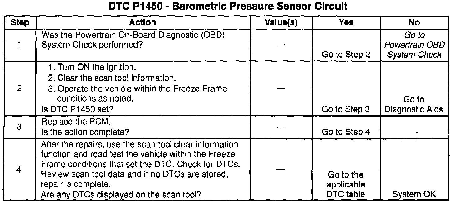 If DTC P1450 cannot be duplicated, the information included in the Freeze Frame data can be useful in determining vehicle operating conditions when the DTC was last set. This may assist in determining how often the DTC sets.