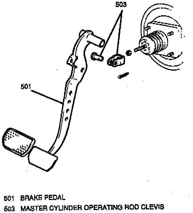8. Brake pedal to brake booster push rod clevis, secure with clevis pin and cotter pin.