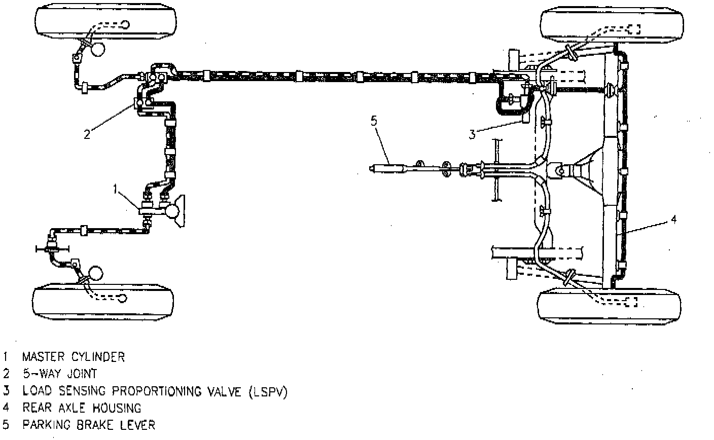 A four-wheel Antilock Brake System (ABS) is optional equipment. When the foot brake pedal is pressed, hydraulic pressure is developed in the master cylinder to actuate the front calipers and rear wheel cylinders. The Antilock Brake System (ABS) is designed to reduce wheel lockup (and the resulting loss of driver control) during hard braking. The system functions using a hydraulic modulator to regulate hydraulic brake pressure. This system is controlled by a microprocessor, the Electronic Brake Control Module (EBCM). The EBCM operates by receiving signals from various sensors. For more information regarding ABS, refer to General Description in Antilock Brake System. A Load Sensing Proportioning Valve (LSPV) is installed between the master cylinder and rear brake hydraulic circuit on models without ABS.