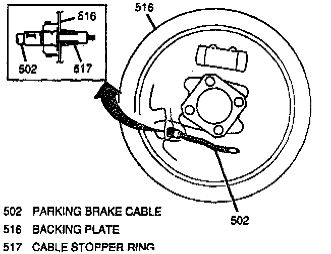 2. Parking brake cable from backing plate by squeezing parking brake cable stopper ring.