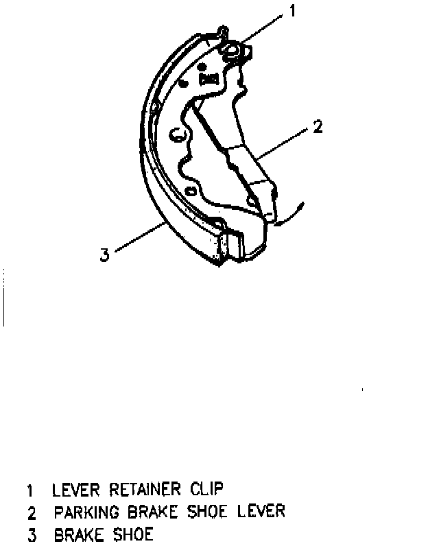 1. Parking brake shoe lever to shoe lining.