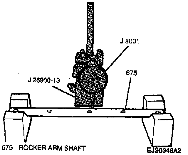 NOTE: Rocker arm shaft runout using a J 8001 with a J 26900-13, or equivalents.