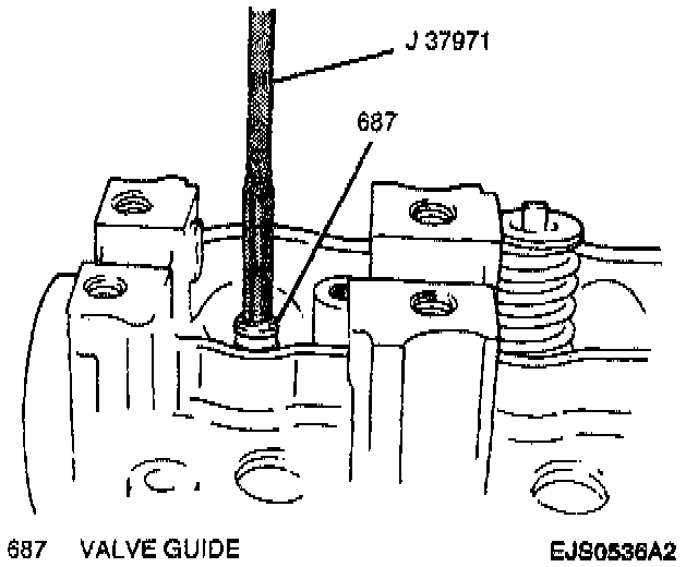 2. Valve guide to cylinder head using a valve guide seal installer. Drive in new valve guide until valve guide seal installer contacts cylinder head. After installing, make sure the valve guide protrudes from cylinder head by 11.5 mm (0.45 inch).
