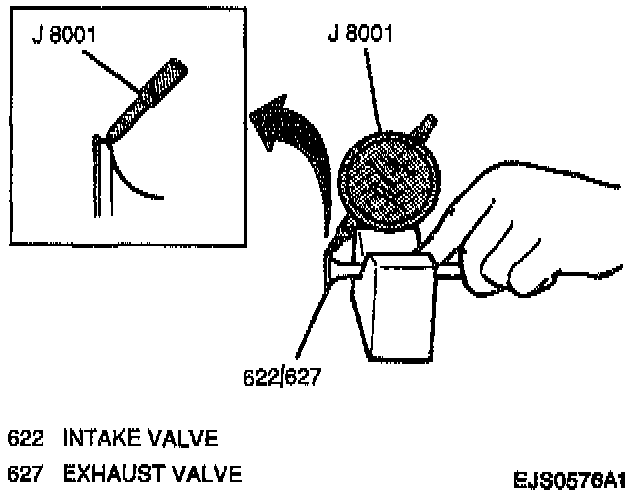 INSPECT1. Each valve for wear, burn or distortion at its face and stem. Replace as necessary.