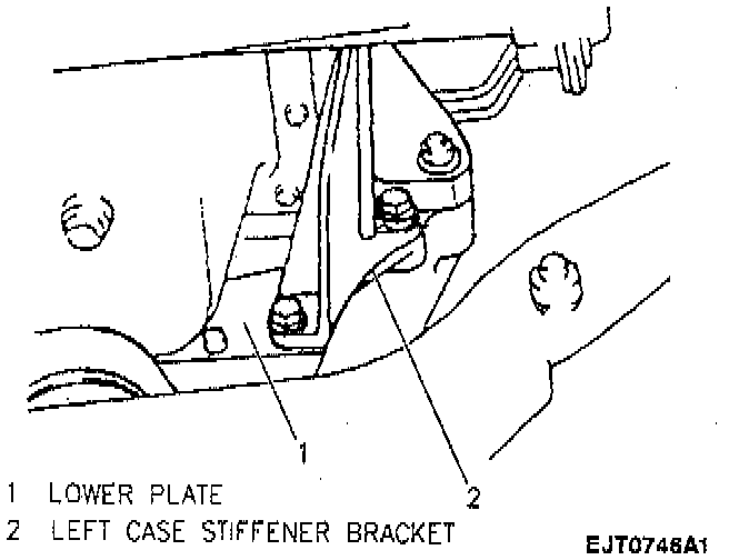 7. Transmission left side stiffener bracket, two bolts (automatic transmission models).