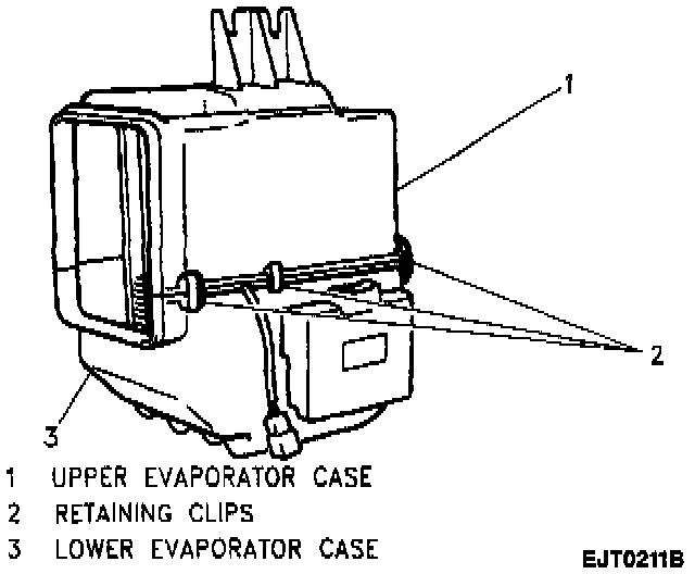 1. A/C amplifier to evaporator case; slide and snap into place.