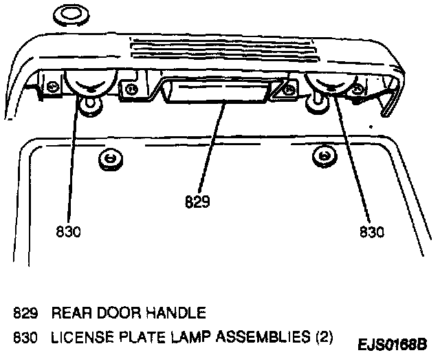 3. License plate lamp assembly to rear door; secure with two screws.