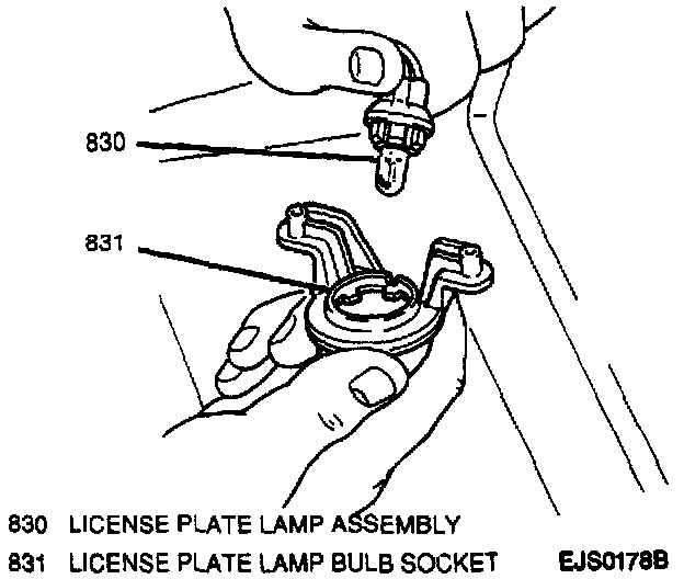 2. License plate lamp bulb socket to lamp assembly.