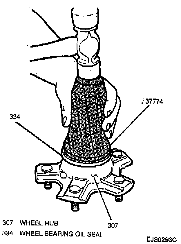 16. Inner and outer bearing races from hub using J 37772 and J 8092. Remove bearing races only if they are scored or pitted.