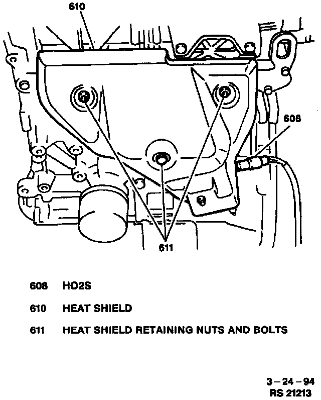3. Three nuts and two bolts and heat shield from exhaust manifold.