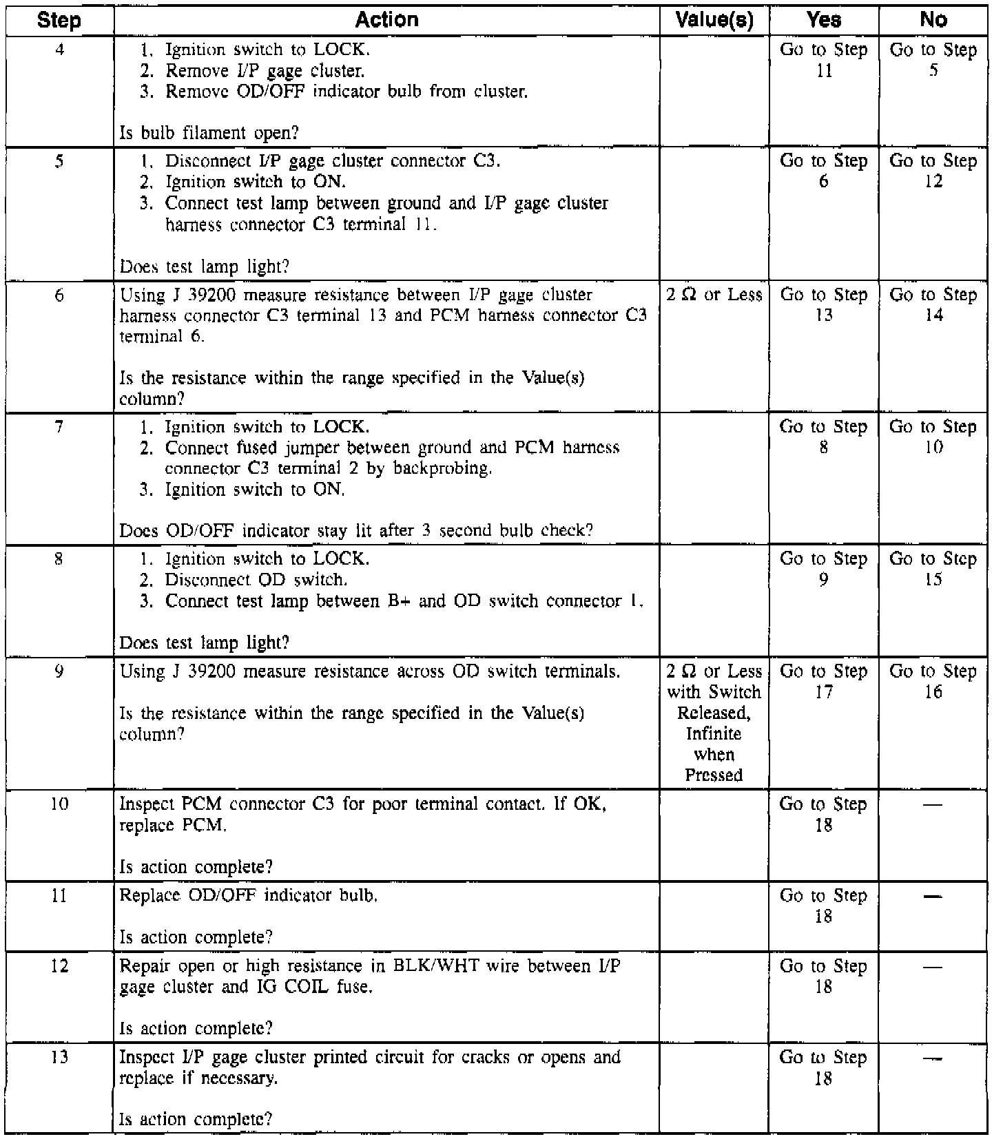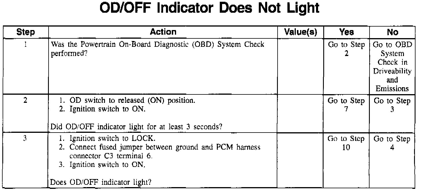 18. Checks for proper operation of the OD/OFF indicator.