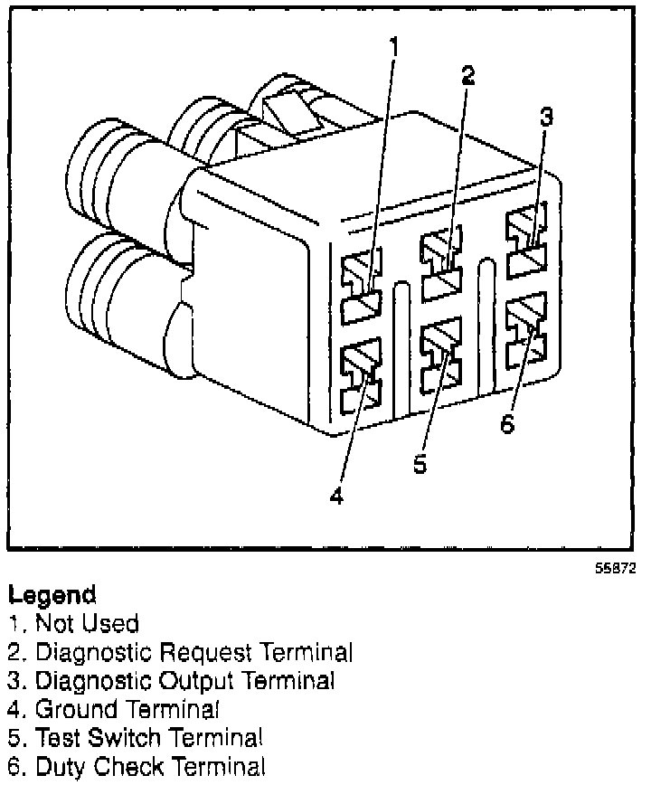 4. Connect a DMM (J 39200) from terminal 6 (duty check) in the Duty Check Data Link Connector to Terminal 4 (ground).