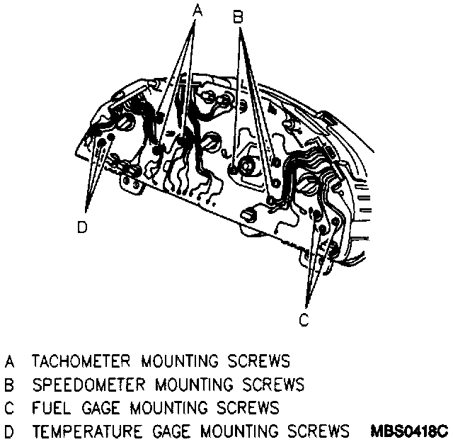 1. Fuel gage to instrument cluster housing; secure with three screws.