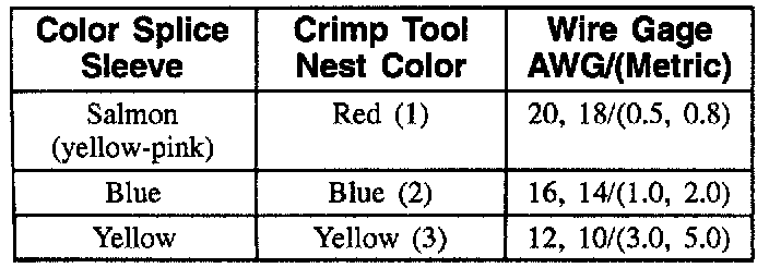 ^ Use the crimp and sealed splice sleeves on all types of insulation except tefzel and coaxial.