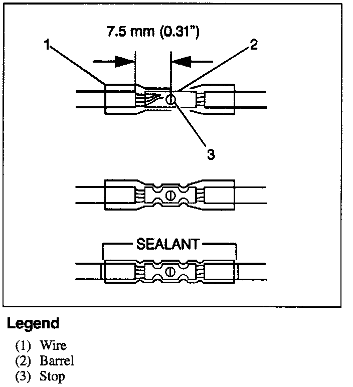 ^ Do not use the crimp and sealed splice sleeve to form a splice with more than two wires coming together.