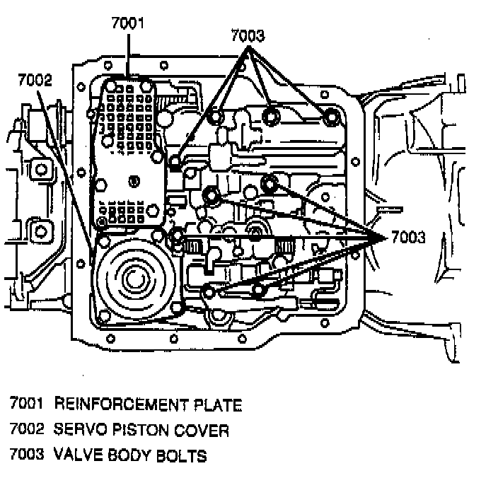 14. TCC solenoid onto reinforcement plate; secure with two bolts.