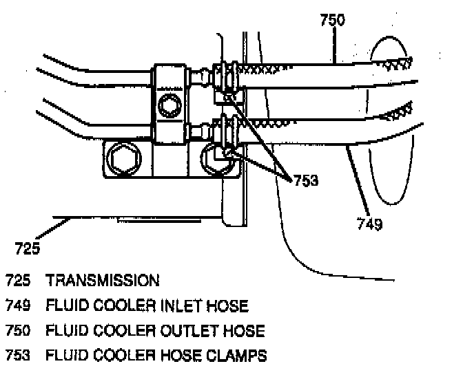 8. Reconnect fluid cooler hoses to cooler lines at right side of transmission.